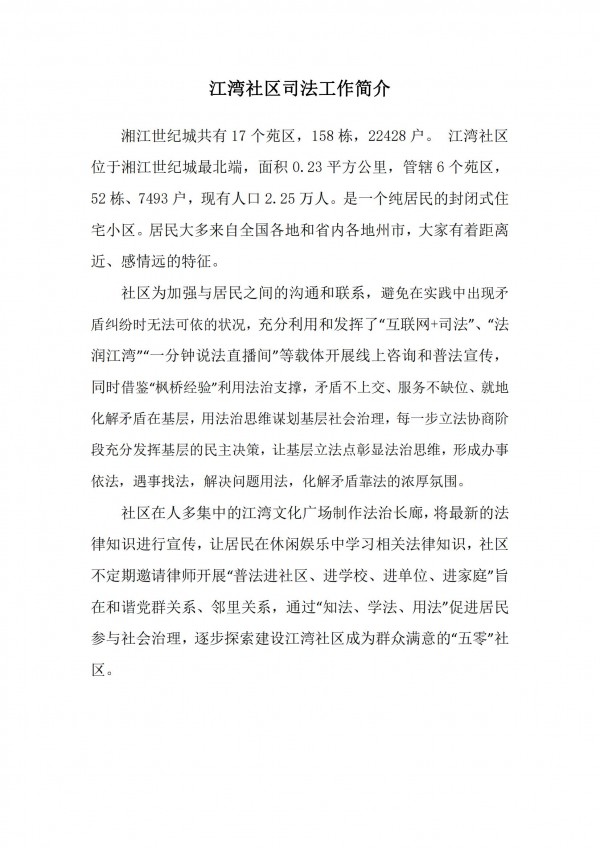 江湾社区司法工作简介