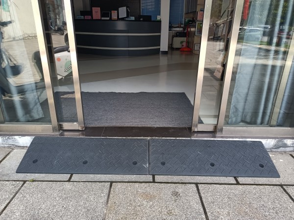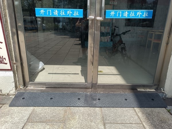 社区门口安装轮椅斜坡板,为辖区残疾人办理业务提供方便。