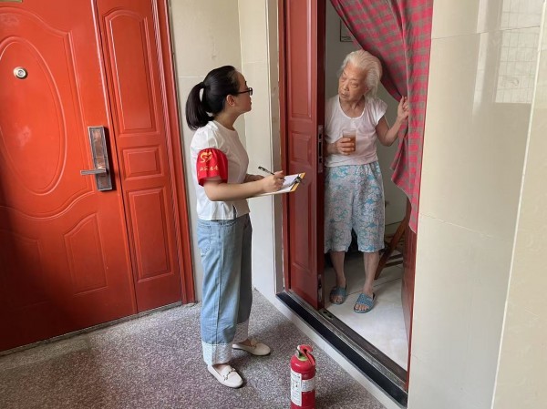 社区工作人员走访80岁高龄老人,开展消防安全宣传。