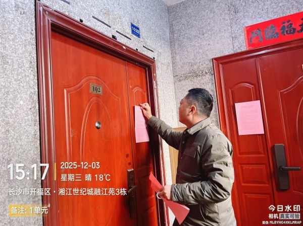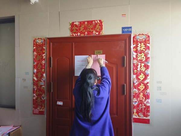 工作人员上门走访融江苑10栋301了解情况,上户无人在家