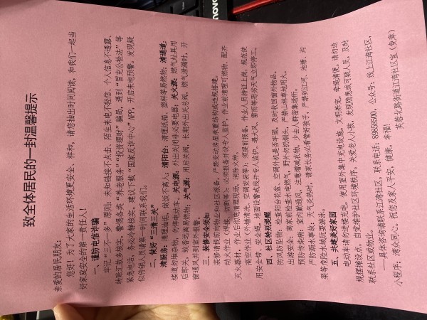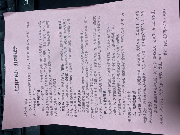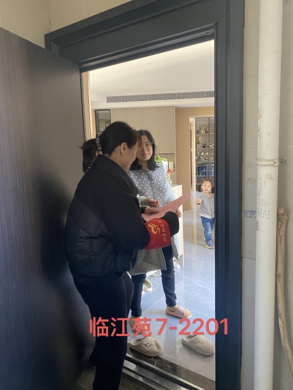 开展敲门行动,走访临江苑5-3203,发放温馨提示