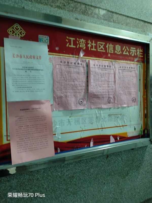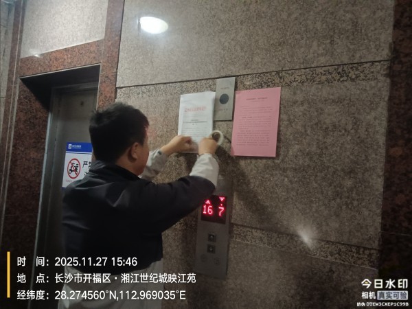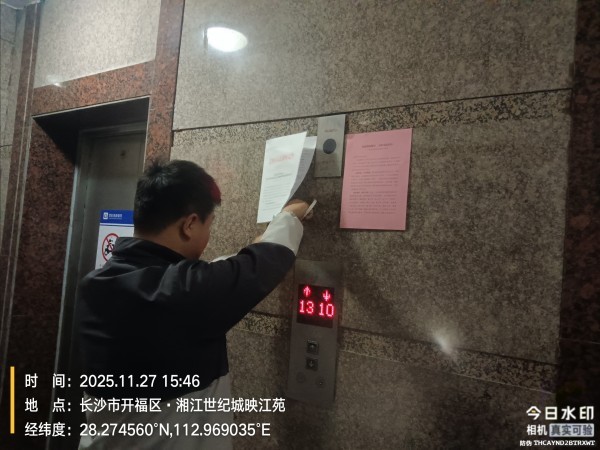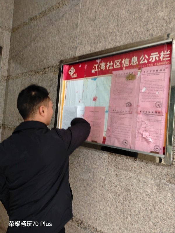 对映江苑单元楼栋粘贴禁止燃放烟花爆竹宣传单和文件。