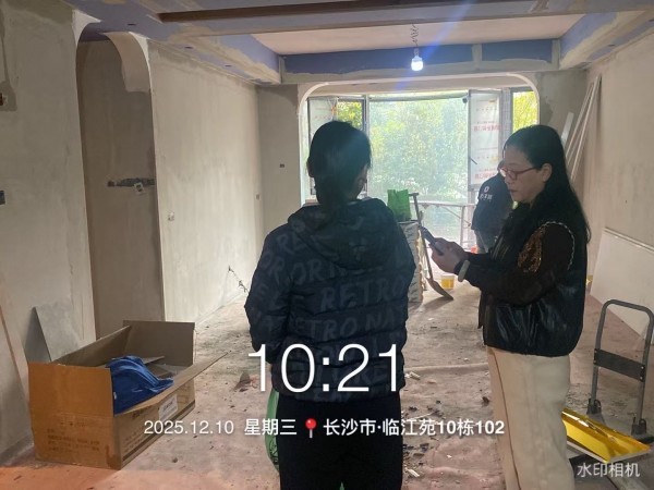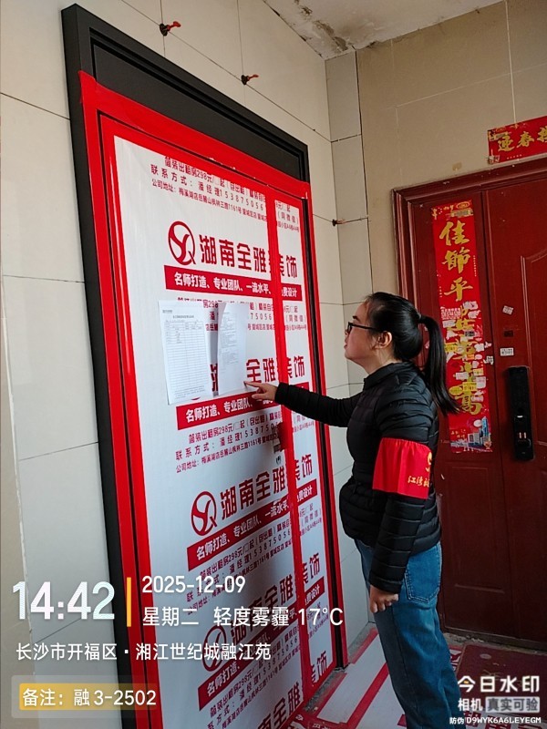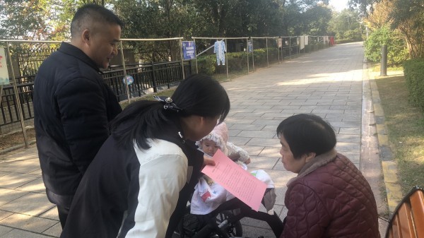 网格员对临江苑房屋装修进行巡查、医保宣传、消防安全。