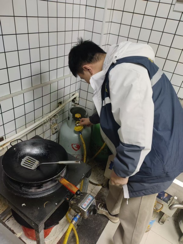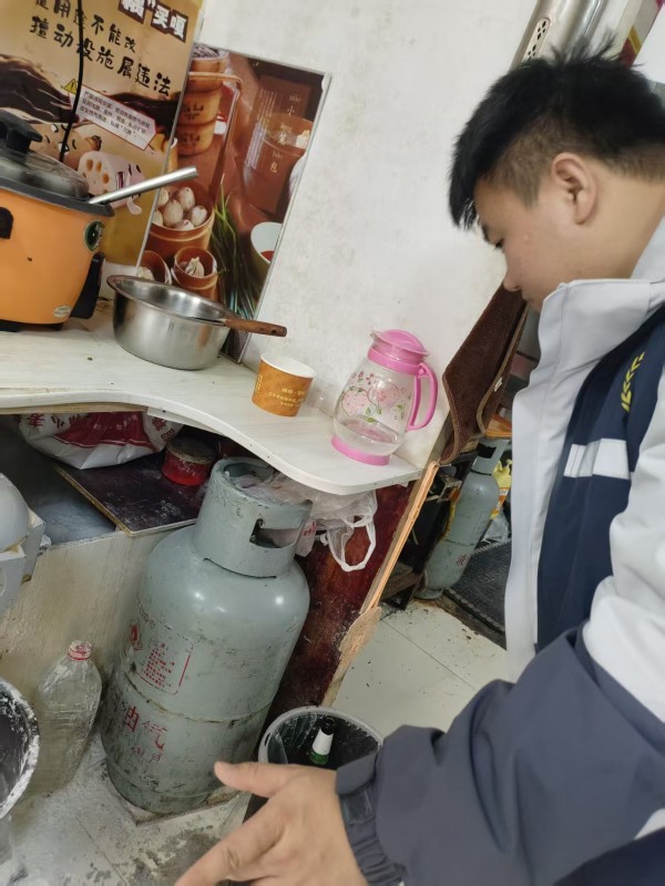 江湾社区在安全生产排查中,重点核查辖区门店燃气罐的存储条件与使用状态,筑牢燃气安全防线。